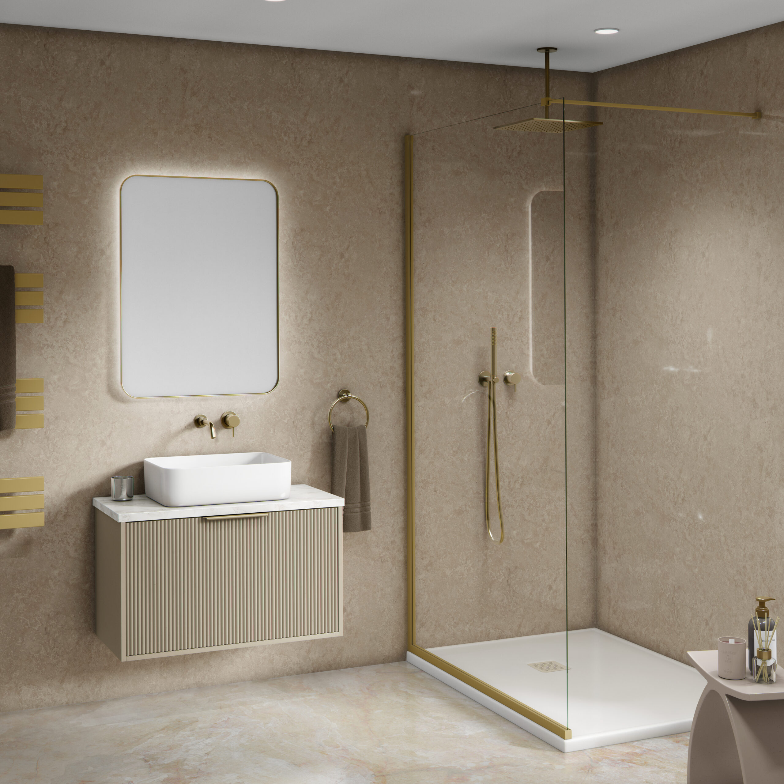 The panels can be installed on any surface, including brick, concrete, timber, plasterboard and over ceramic tiles plus more. The surface must be clear of any debris, obstructions and grime. We recommend that the surface is treated with a waterproof coating (‘tanked’) prior to installation for waterproofing.