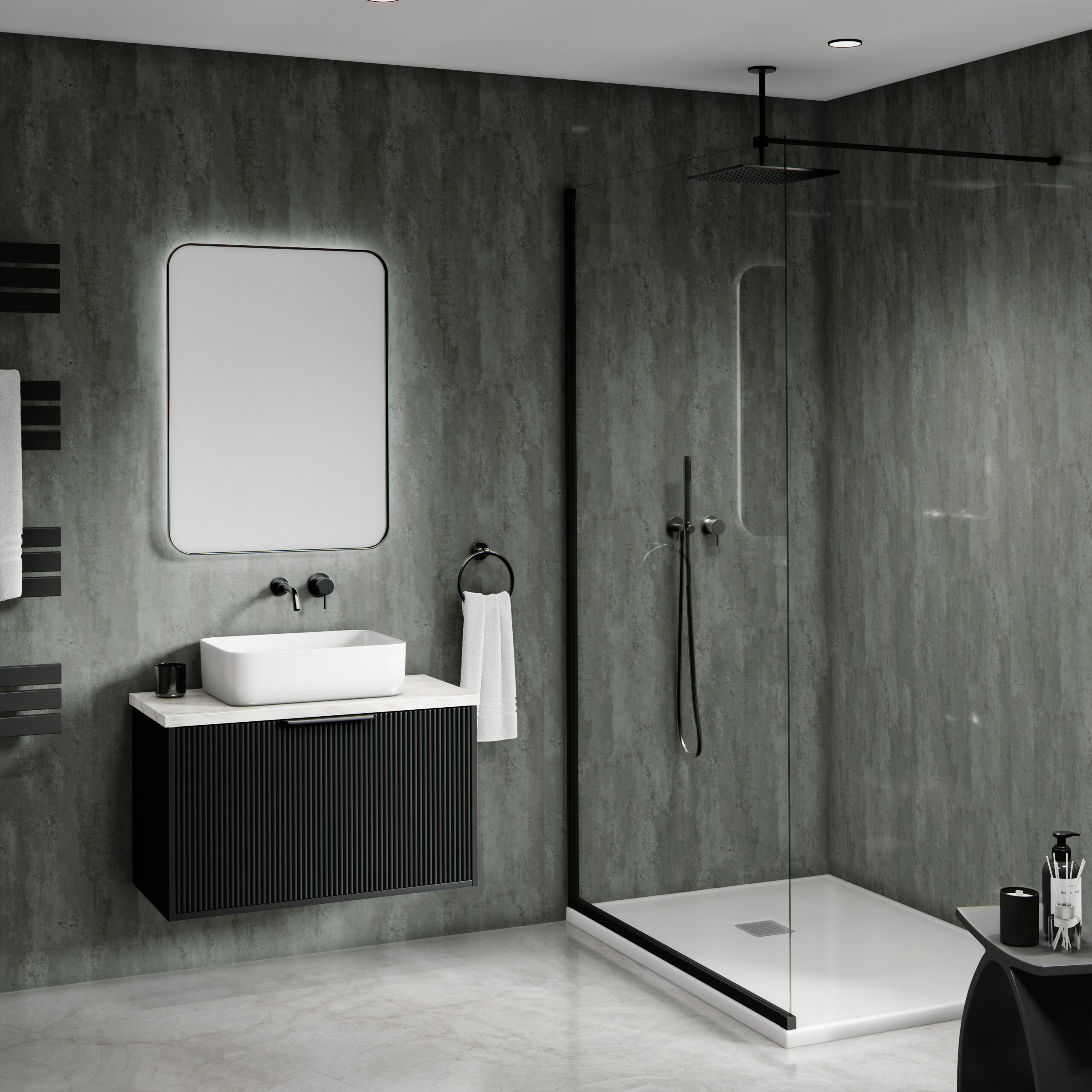 The panels can be installed on any surface, including brick, concrete, timber, plasterboard and over ceramic tiles plus more. The surface must be clear of any debris, obstructions and grime. We recommend that the surface is treated with a waterproof coating (‘tanked’) prior to installation for waterproofing.