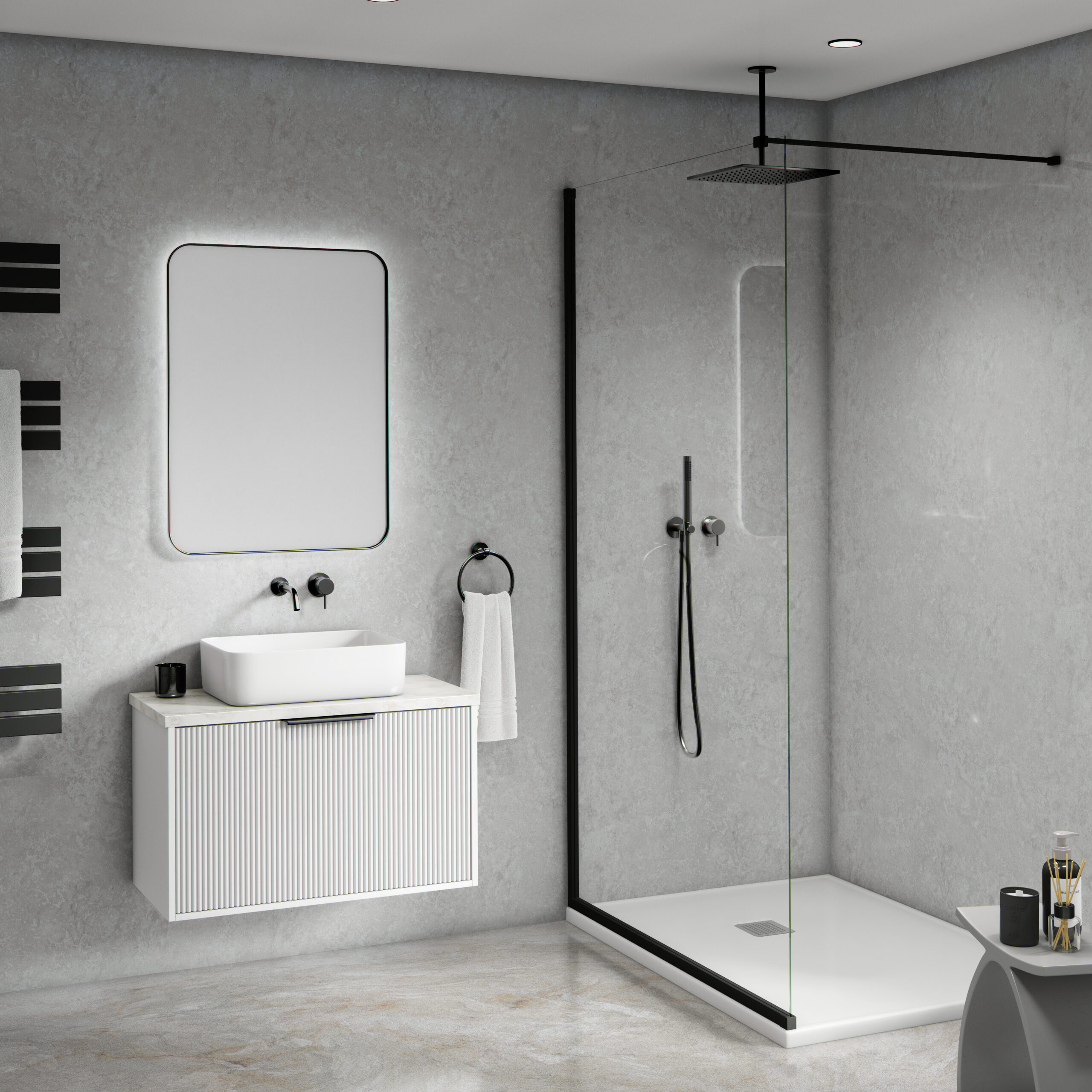 The panels can be installed on any surface, including brick, concrete, timber, plasterboard and over ceramic tiles plus more. The surface must be clear of any debris, obstructions and grime. We recommend that the surface is treated with a waterproof coating (‘tanked’) prior to installation for waterproofing.