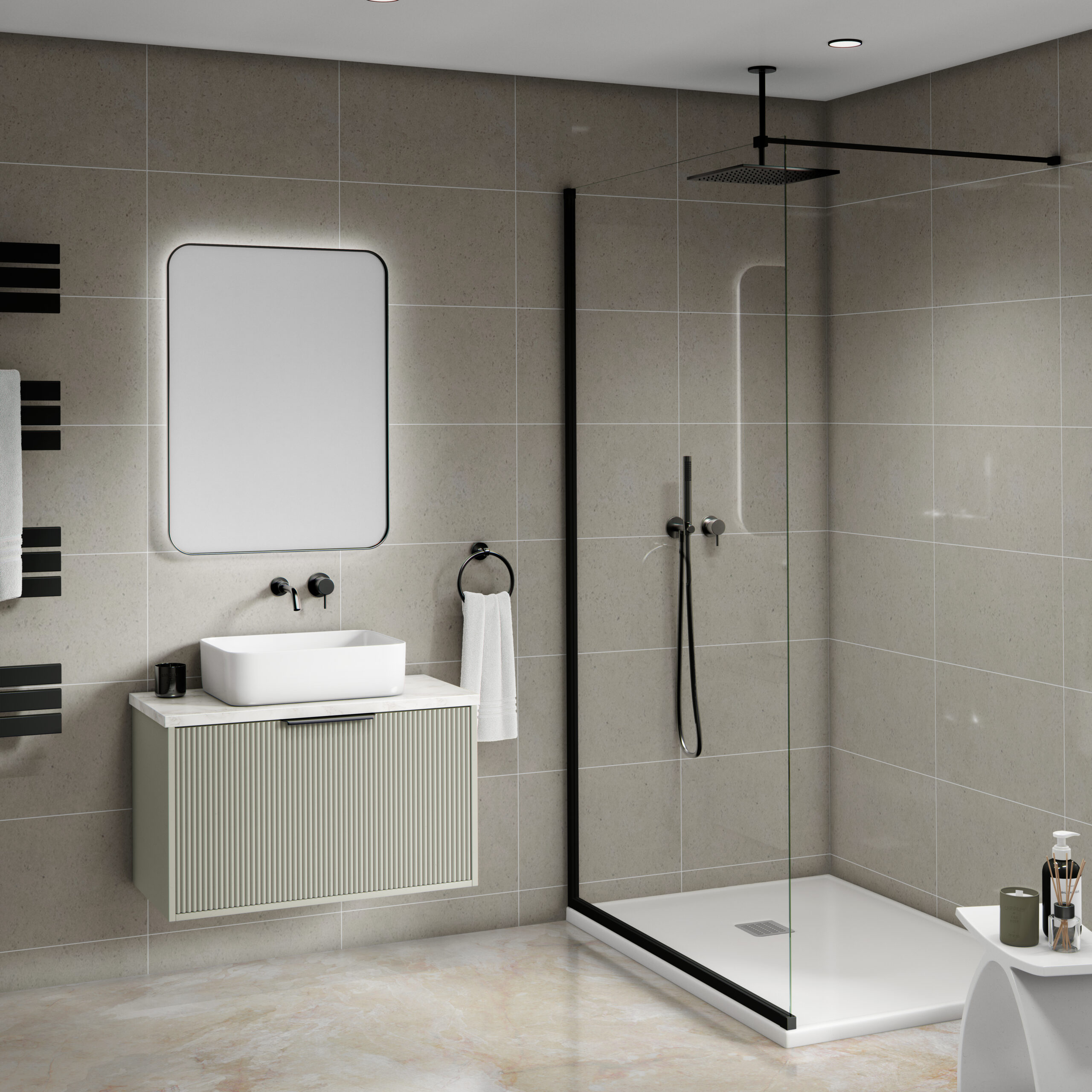 The panels can be installed on any surface, including brick, concrete, timber, plasterboard and over ceramic tiles plus more. The surface must be clear of any debris, obstructions and grime. We recommend that the surface is treated with a waterproof coating (‘tanked’) prior to installation for waterproofing.